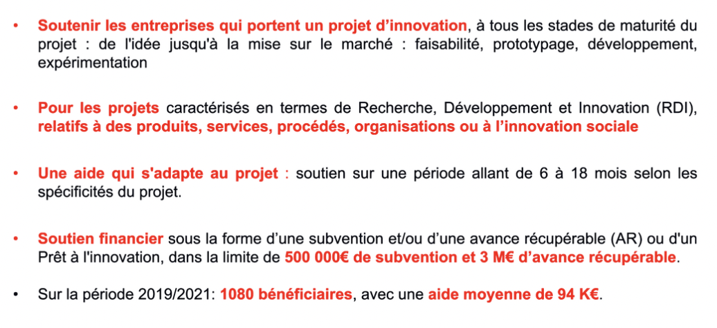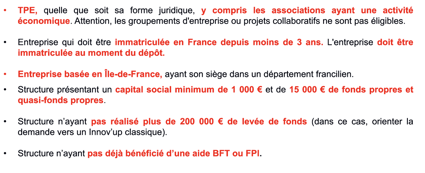 - Innov’up incubation vs. Innov’up Classique > Permet de faire passer les 15k en fonds propre ET quasi-fonds propre > Donne accès à des coûts d’incubation > Réduit les délais (1 mois vs. 3 mois) + augmente le taux de sélection (75% vs. 50%)
