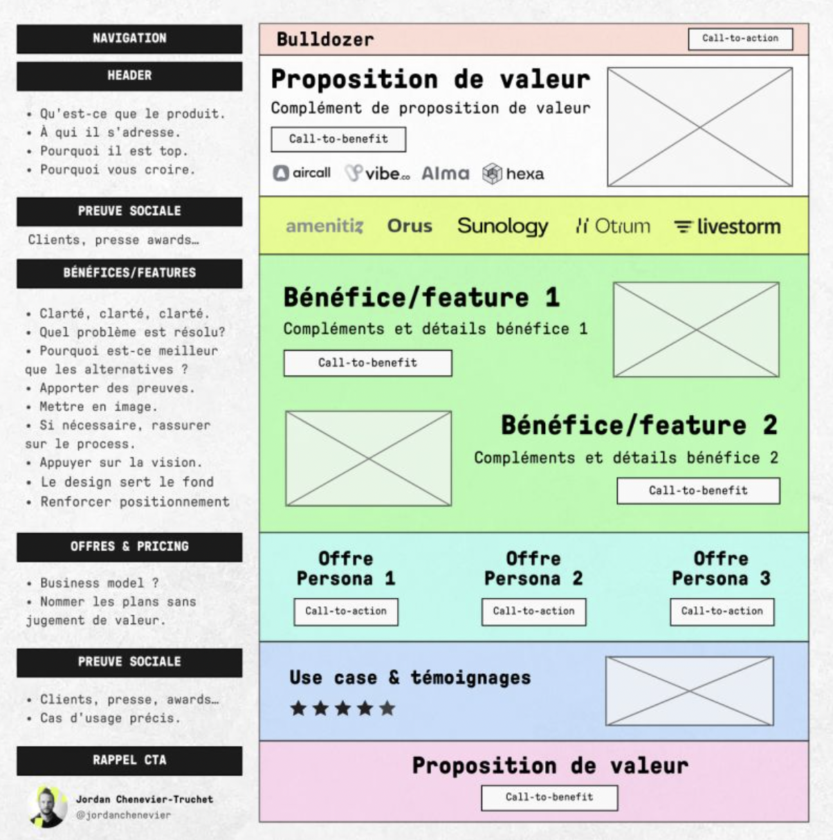 3. Complétez les sections avec du copywriting reprenant les étapes 1 + 2