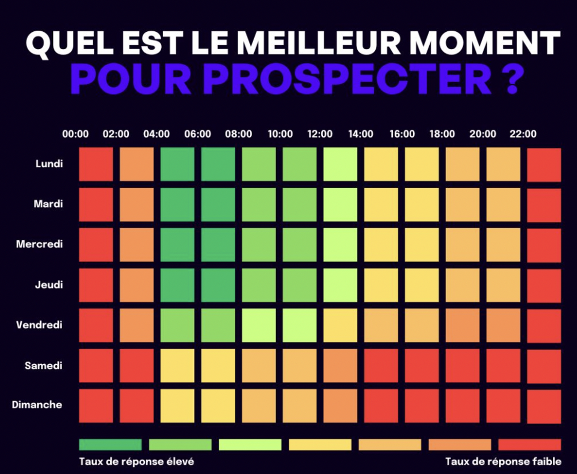 Pendant longtemps, beaucoup disaient que le mardi et le jeudi étaient les meilleurs jours. Ce qui a mécaniquement désaturé le lundi. Le mardi, mercredi et jeudi restent de très bons jours pour prospecter quand même.